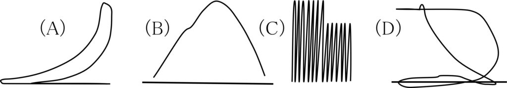 (1) (A),(B),(C)及び(D)のインジケータ線図から,それぞれ何を知ることができるか。