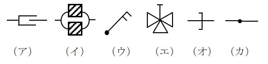次の㋐~㋕に示す船舶用配管系統の図記号は何を示すか。それぞれ記せ。